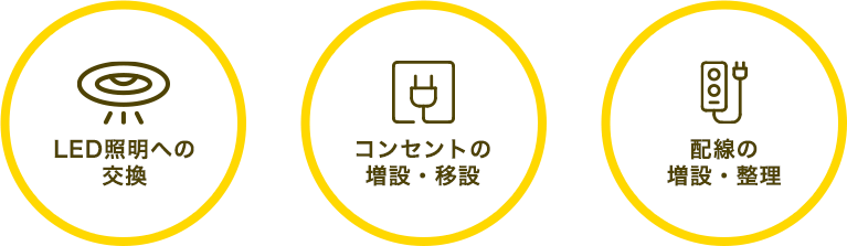 スマホの充電には欠かせないコンセントや、省エネ・長寿命であるLED照明など、ご家庭の電気工事全般に対応しています。